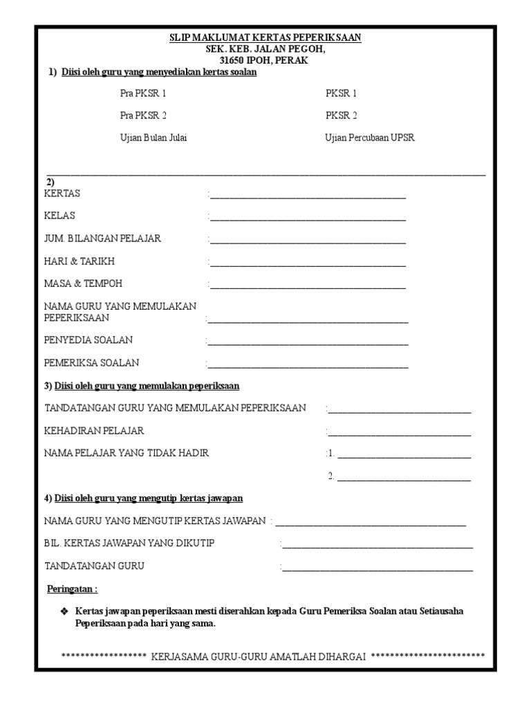 Contoh Kertas Maklumat Peperiksaan Sekolah
